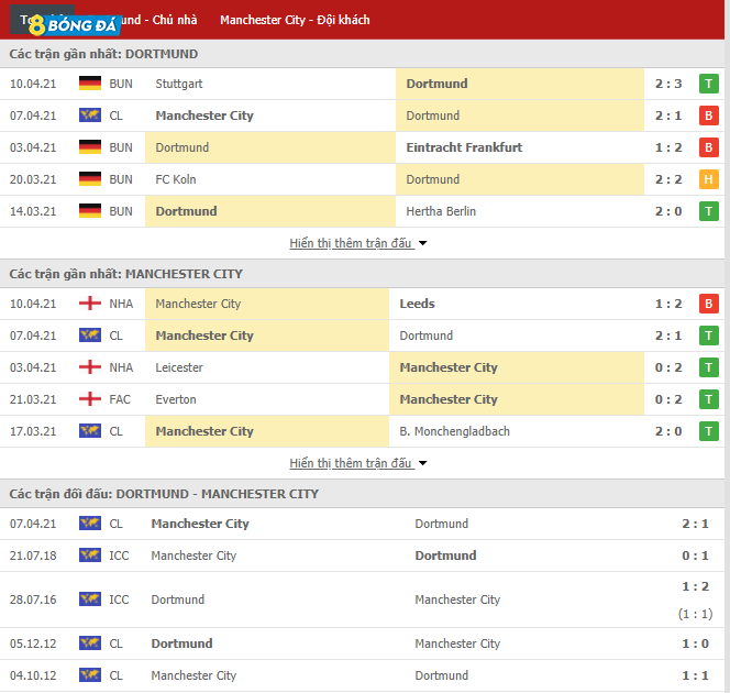 Phong độ Dortmund vs Manchester City trong các trận đấu gần đây