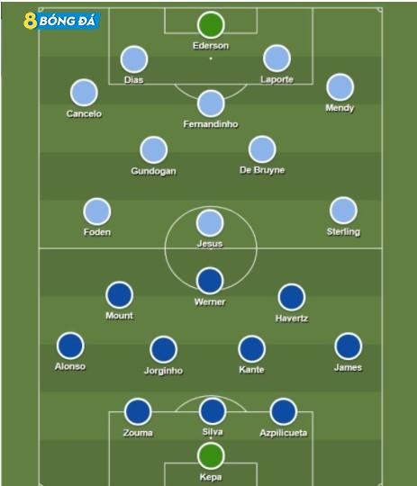 Fernandinho có thể dẫn dắt đội ở hàng tiền vệ cùng với các trụ cột Kevin De Bruyne và Ilkay Gundogan. Trong khi Sterling và Gabriel Jesus nên bổ sung cho Phil Foden ở hàng tiền đạo.