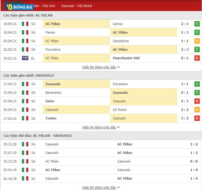 Phong độ AC Milan vs Sassuolo trong các trận đấu gần đây
