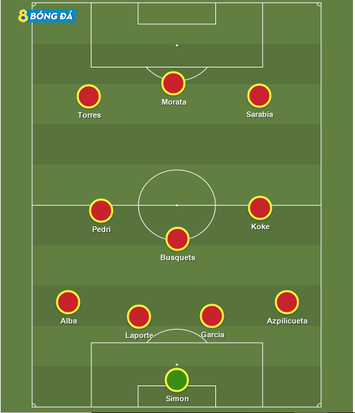 Alvaro Morata đã khiến một số nhà phê bình phải câm lặng bằng một cú vô lê ngoạn mục vào lưới Croatia, vì vậy tiền đạo thuộc biên chế Juventus sẽ giữ vị trí của mình với Ferran Torres và Pablo Sarabia hỗ trợ trong vai trò chạy cánh.