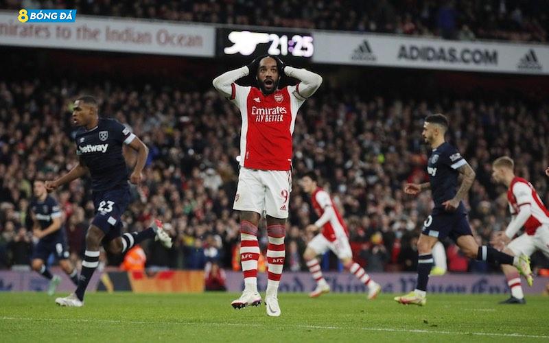 West Ham bị thủng lưới và bị rút ngắn xuống còn 10 người khi Lacazette băng xuống ở phút 66.