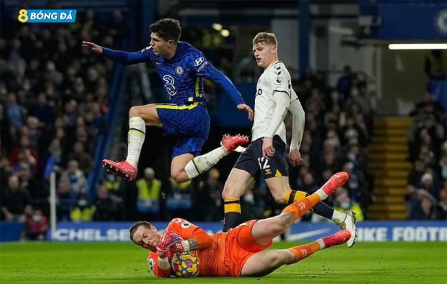 Mount đã đón đường chuyền của Antonio Rudiger cách khung thành sáu thước, nhưng một lần nữa Pickford lại cứu nguy cho Everton khi anh cứu thua bằng chân không duỗi thẳng.