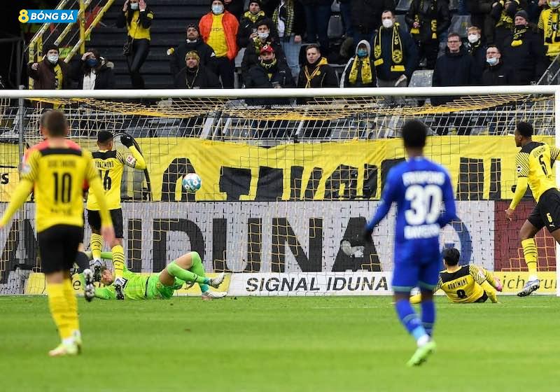 Jonathan Tah ghi bàn thắng thứ 4 ở phút thứ 53 với bàn thắng ngoạn mục tiếp theo, tung cú vô lê đưa bóng đi vọt xà ngang sau khi Dortmund không thể cản phá thành công quả phạt góc và Moussa Diaby đã hoàn thành xuất sắc một pha phản công khác ở phút 87. Cầu thủ vào thay người của Dortmund, Steffen Tigges đã tận dụng một sơ suất hiếm hoi của Leverkusen để ghi bàn ở phút bù giờ, nhưng điều đó đã không ngăn cản được những tiếng la ó và huýt sáo từ các CĐV đội nhà.