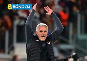 HLV Jose Mourinho mừng tấm vé vào bán kết Europa Conference League bằng cách chỉ ...