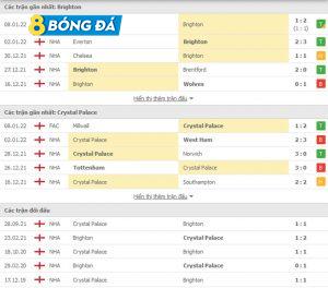 Phong độ Brighton vs Crystal Palace trong các trận đấu gần đây
