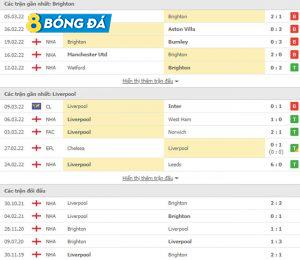 Phong độ Brighton vs Liverpool trong các trận đấu gần đây