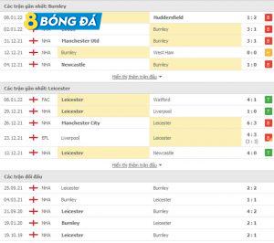 Phong độ Burnley vs Leicester trong các trận đấu gần đây