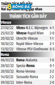 Mùa này, Roma có phong độ sân khách rất phập phù trên mọi mặt trận. Do đó, dẫu được đánh giá cao hơn ở cuộc đối đầu với Vitesse tại đất Hà Lan, đội quân của HLV Jose Mourinho cũng sẽ khó ca khúc khải hoàn và đành chờ quyết định ở trận lượt về tại sân Olimpico.