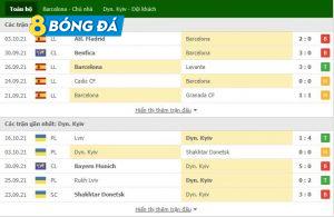 Phong độ Barca vs Dynamo Kyiv trong các trận đấu gần đây