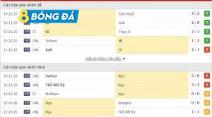 Phong độ Bỉ vs Nga trong các trận đấu gần đây