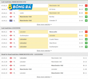 Phong độ Man United vs Leicester trong các trận đấu gần đây
