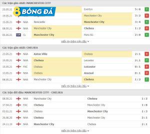 Phong độ Manchester City vs Chelsea trong các trận đấu gần đây