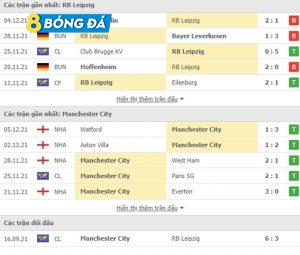 Phong độ Leipzig vs Man City trong các trận đấu gần đây