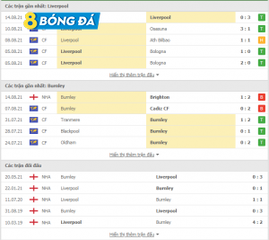Phong độ Liverpool vs Burnley trong các trận đấu gần đây