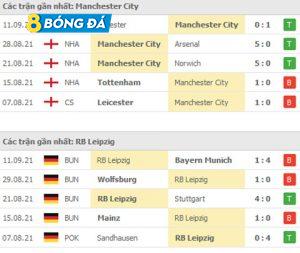 Phong độ Man City vs RB Leipzig trong các trận đấu gần đây