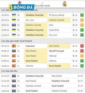 Phong độ Shakhtar vs Real Madrid trong các trận đấu gần đây