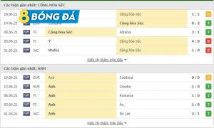 Trải qua 3 lần ra sân gần đây trên mọi đấu trường, CH Czech thể hiện phong độ rất ấn tượng khi thắng 2 và hoà 1. Tại Euro năm nay họ đang là ngựa ô đáng xem với lối đá rất đẹp mắt và hiện đại. Với 4 điểm có được sau 2 lượt trận, Czech sẽ hướng tới tối thiểu là 1 điểm trước tuyển Anh để chắc suất đi tiếp.