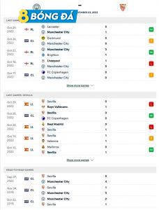 Phong độ thi đấu gần đây của Man City vs Sevilla
