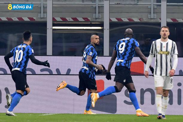 Phút thứ 12, Arturo Vidal không chiến dũng mãnh để mở tỷ số cho Inter Milan từ quả tạt bóng của Barella, đây là bàn thắng đầu tiên của cựu tiền vệ Juve cho nửa xanh thành Milan.