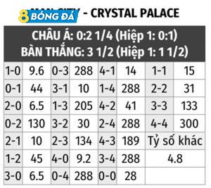 Phân tích kèo Châu Á, Châu Âu kèo chấp Man City vs Crystal Palace