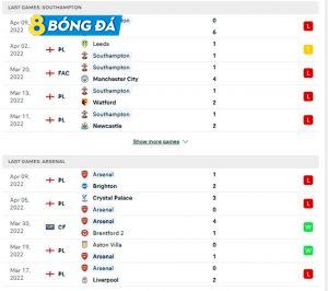 Phong độ thi đấu gần đây của Southampton vs Arsenal