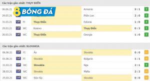 Phong độ Thuỵ Điển vs Slovakia trong các trận đấu gần đây