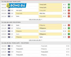 Phong độ Trung Quốc vs Philippines trong các trận đấu gần đây