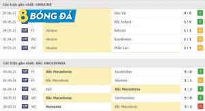 Phong độ Ukraine vs Bắc Macedonia trong các trận đấu gần đây