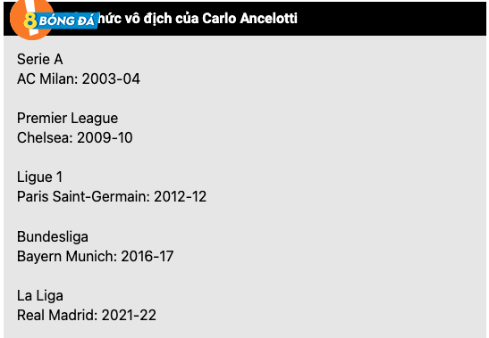 Carlo Ancelotti đã trở thành huấn luyện viên đầu tiên vô địch ‘năm giải đấu lớn’ ở châu Âu, sau khi ông nâng cao chức vô địch La Liga với Real Madrid.