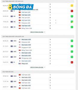 Phong độ U23 Việt Nam vs U23 Hàn Quốc trong các trận đấu gần đây